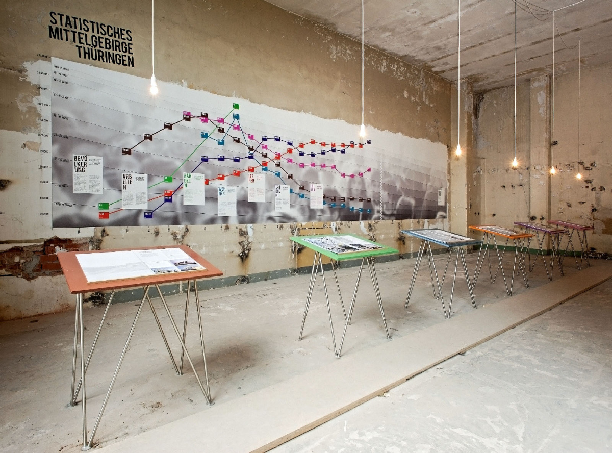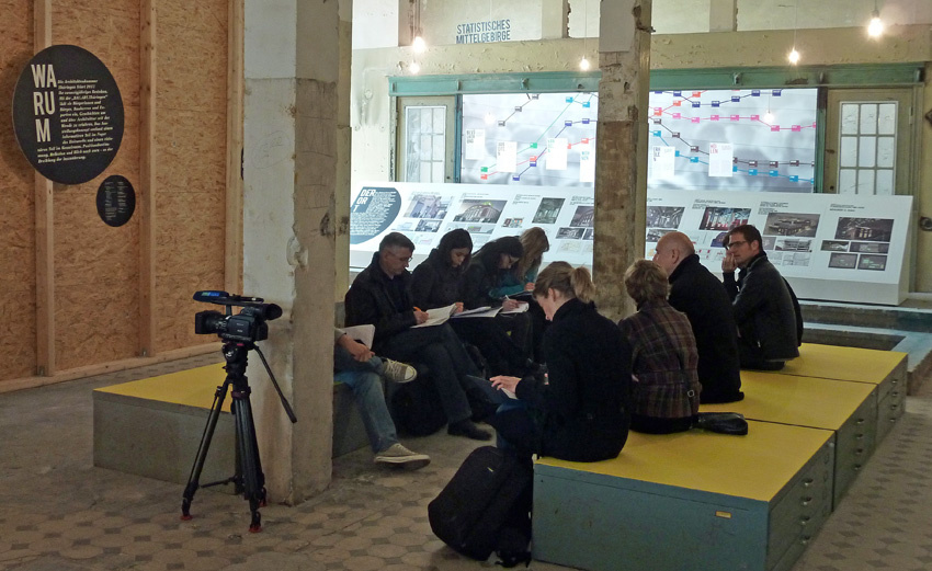Ort der Ausstellung war das Heizwerk am Brühl in Erfurt. Das ambitionierte Ausstellungskonzept umfasste einen informativen Teil im Foyer des Heizwerks und einen visionären Teil im Kesselraum. Positionsbestimmung, Reflexion und Blick nach vorn – so der Dreiklang der Inszenierung.