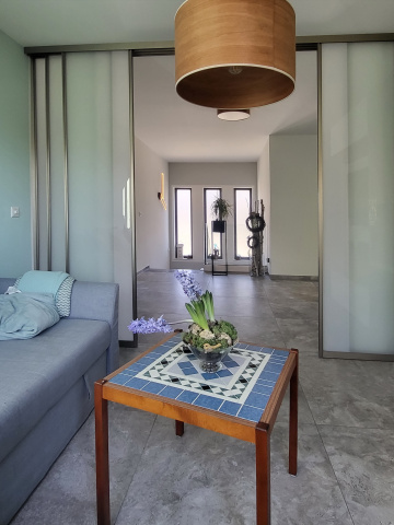 Das Gebäude besteht aus 3 Baukörpern. Im EG findet das Wohnen statt. Weiterhin wurden hier Schlafraum und ein großes Bad untergebracht. Im OG finden 3 Schlafräume, der Gäste- und Spielbereich sowie ein kleines Bad platz.