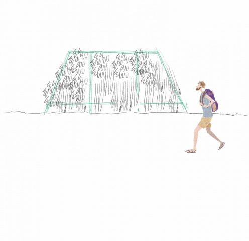 Für die Schaffung von Willkommensorten im Land der 1000 Teiche wurde „Horst“ als Prototyp entwickelt – ein Nest für Wanderer, das als Startpunkt und Rückzugsort für Ausflüge dient. Die Grundstruktur besteht aus modularen, trapezförmigen Stahlrahmen, die flexibel kombiniert oder einzeln aufgestellt werden können. Die Rahmen spannen wandelbar bespielbare Zwischenflächen auf. Mit einem einfachen Klemmsystem können Elemente wie Gebäudehülle, Schautafeln, Regale und Spielgeräte befestigt werden.