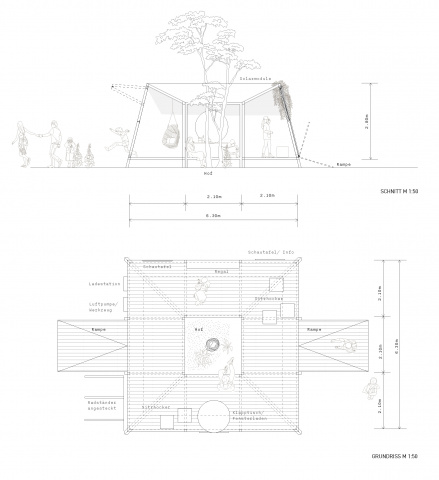 „Horst“ ist ein lebendiges Projekt, das sich mit der Nutzung und Zeit verändert und weiterentwickelt. Durch die Möglichkeit, die Module mit verschiedenen natürlichen oder recycelten Materialien zu füllen - wie Schilf, Holz, Textilien oder Pflanzen - fördert es experimentelle Bauweisen und eine nachhaltige Auseinandersetzung mit Ressourcen. Als Reallabor wird „Horst“ zum Spielraum für Innovationen und Diskussionen über ökologische, ökonomische und soziale Aspekte von Architektur und Raumgestaltung.