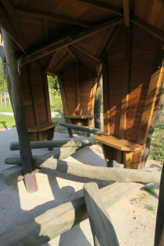 Blick auf einen überdachten Sitzbereich, Bild: Sabine Schwerin -