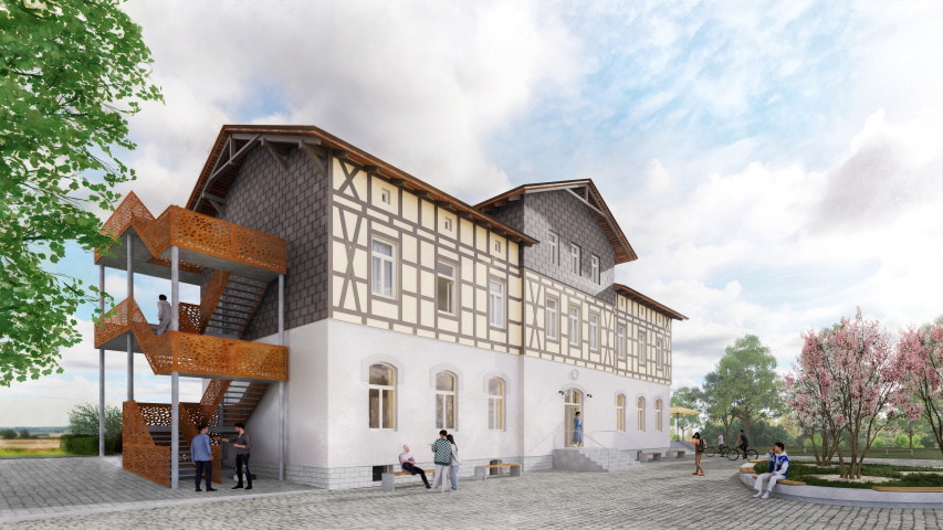 Von 02/2024 bis 12/2025 erfolgten der Umbau und die Sanierung des alten Bahnhofsgebäudes zum Wohnen und der Betreuung von Menschen mit ASS (Autismus-Spektrum-Störung).