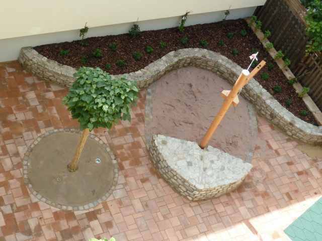 Für die Kinder der Cafebesucher sollten Spielmöglichkeiten geschaffen werden, um ihnen einen angenehmen Aufenthalt, verbunden mit der Anregung ihrer Sinne, zu ermöglichen.