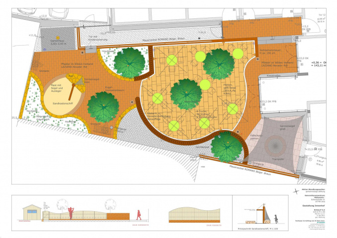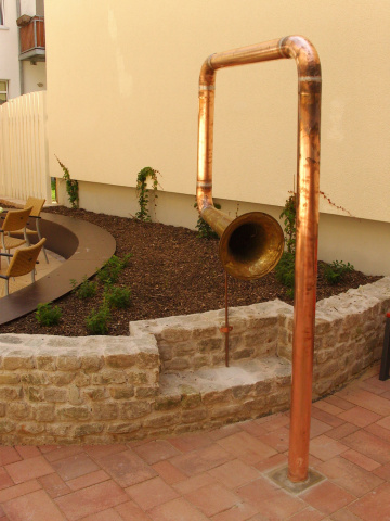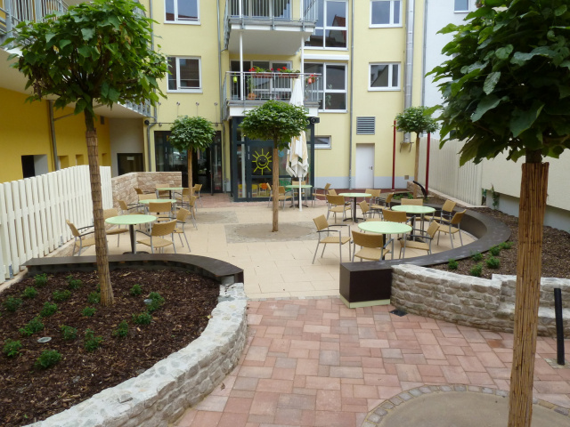 Die Aufgabenstellung bestand in der Schaffung einer Außensitzfläche für das Cafe ´Lenz´ im Innenhof einer neu errichteten Wohnanlage für gemeinschaftliches Wohnen.