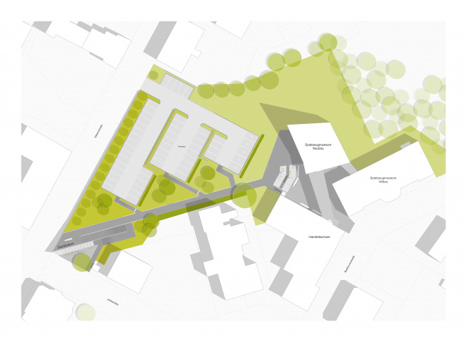 Im Freiraum wird ein den Gesamtraum tragender „Promenaden-Finger“ zur Stadt hin eingeordnet, der mit einem „Stadt-Balkon“, welcher mit dem Neubau korrespondiert, sich selbstbewusst der Innenstadt zuwendet. Die barrierefreie Erschließung des Museums vom Parkplatz war dabei ein wichtiger Aspekt. Weiterhin wurde museumsbezogene, bespielbare Kunst sowie Sitzangebote eingeordnet und die Fläche mit pflegeextensiven Pflanzungen als optische Blickpunkte bereichert.