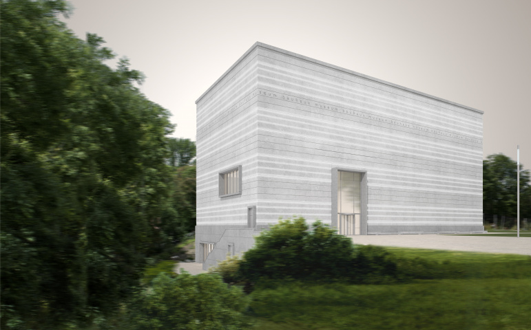 Das Museum ist reduziert auf einen klaren Betonkörper mit 24 LED-Linien. Der Kubus bildet ein Gelenk an der historischen Bruchstelle zwischen Volkspark und dem später errichteten Gauforum durch die Nationalsozialisten. Dem stadträumlichen Konzept folgend ist der innere Aufbau mit Kaskadentreppen orthogonal zum Park ausgerichtet. Der Besucher erwandert so die Ausstellung über wechselseitig verspringende Lufträume bis er schließlich oben angekommen den freien Blick über den Park erhält. Der Entwurf zeichnet sich durch ein differenziertes Energiekonzept aus, wobei die Bauteilaktivierung der Rippendecken die Einhaltung der raumklimatischen Bedingungen garantiert und zu einer Reduktion des Energiebedarfs führt. Mit Eintritt der Dämmerung schimmert der Kubus mit lichter Unschärfe in den Stadtraum.