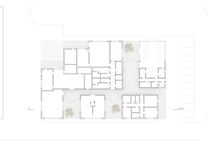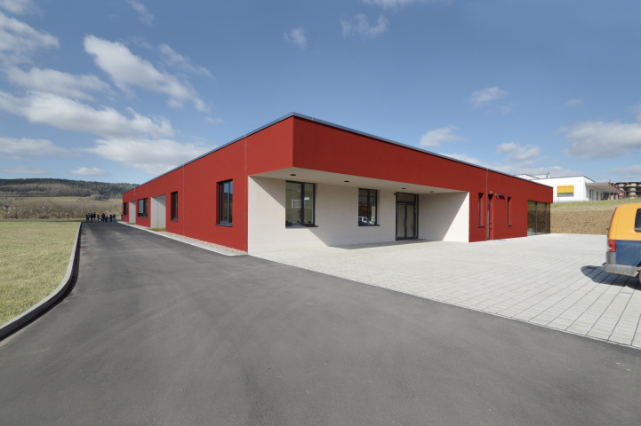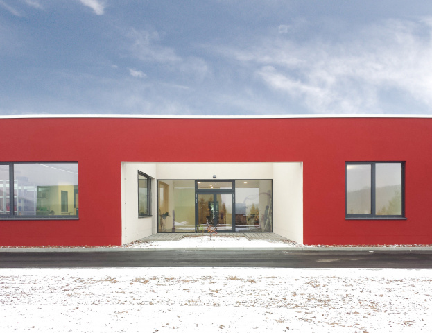 Mit dem Neubau der Werkstatt in Oberzella wird behinderten Menschen ein Arbeits- und Berufsbildungsangebot in einem rollstuhlgerechten Umfeld geboten, es ist ein Haus entstanden in dem jeder gerne arbeitet und Teil der Gemeinschaft ist. Bei der Konzeption des Gebäudes wurde viel Wert auf Tageslicht, eine lesbare und abwechslungsreiche Raumkombination und eine gute Orientierung gelegt. Die Räume gruppieren sich entlang einer Mittelachse, mit wechselnden Gärten, Höfen, Ausblicken und Außenraumbezügen. Mit den Gärten und Pausenhöfen entsteht eine architektonisch wie sozial hochqualitative Gebäudestruktur durch die der Aussenraum überall im Haus spürbar bleibt. Durch die geschützten und verschieden bepflanzten Gärten werden die Innenräume aufgewertet und erhalten Ausblicke in den Naturraum der Werraaue. Durch die an der Mittelerschließung angeordneten Räume ist das Haus hochflexibel und der kompakte Baukörper ist in Herstellung und Betreibung nachhaltig.