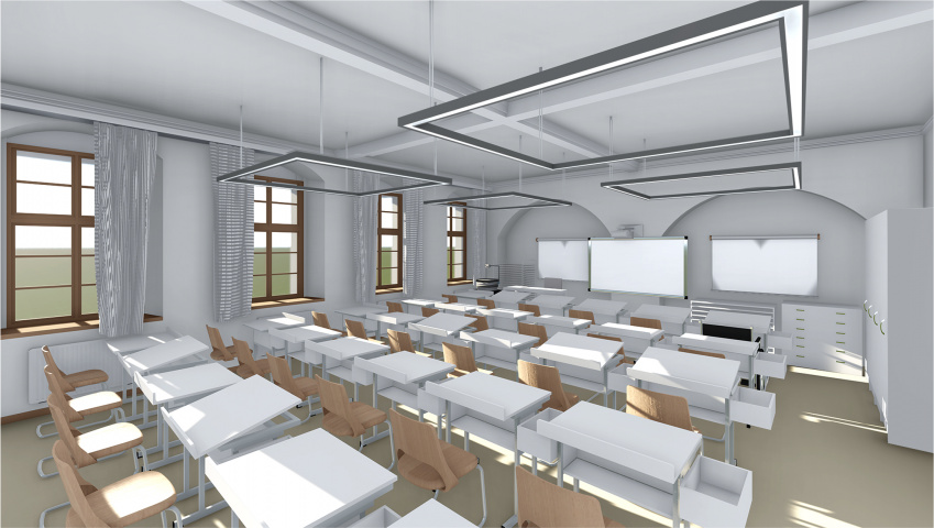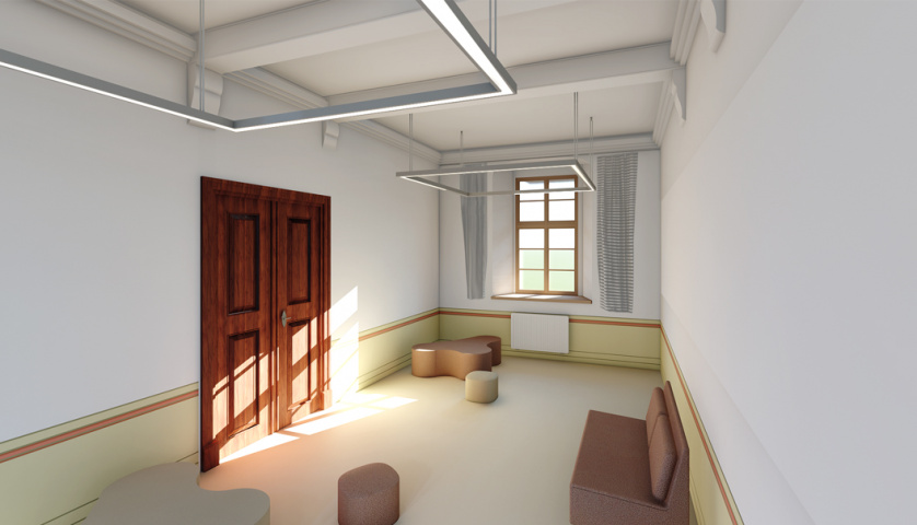 Das Reußische Regierungsgebäude wurde in den zukünftigen Schulstandort einbezogen. Aufbauend auf der 1. Etappe der „Grundhaften Sicherung“ mit den wesentlichen Leistungen Trockenlegung sowie Sanierung des Tragwerks in Vorbereitung der zukünftigen Schulnutzung und die Sanierung der Fassaden- und Dachbereiche unter denkmalschutzrechtlichen Aspekten erfolgt die Umsetzung der 2. Etappe Sanierung und Herstellung der Ausbauten für die zukünftige Nutzung als Gymnasium, das heißt sämtliche Herstellung der Bekleidungen (Boden, Wände, Decken, Türen) und sonstiger Elemente, wie insbesondere Geländer und Gitter.