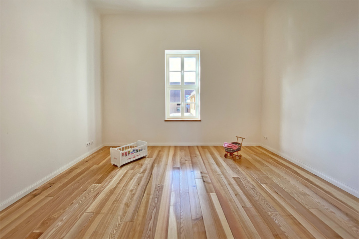 Der Hof, der im letzten Jahrhundert vornehmlich landwirtschaftlich genutzt wurde, besticht durch sein großzügiges Vorderhaus, das im Obergeschoss herrschaftliche Wohnräume mit beeindruckenden Raumproportionen aufweist.