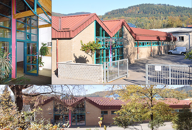 Die Dreifeld-Sporthalle dient vorwiegend dem Schulsport. Die Spielfeldgröße entsprichtWettkampfbedingungen, so dass