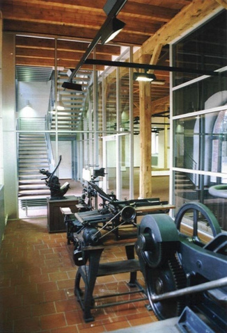 Der unter Denkmalschutz stehende Sackaufzug ist vollständig erhalten und im Erdgeschoß in das Ausstellungskonzept eingebunden. Im Erdgeschoß sind vorwiegend historische Druckmaschinen ausgestellt. Desweiteren ist im Erdgeschoß ein Seminarraum entstanden. Im 1.Obergeschoß des Hauptgebäudes wird die Sammlung der Kämmerer sowie die Südseesammlung gezeigt. Das 2. und 3.Obergeschoß dienen zur Lagerung von musealen Gegenständen und Museumstechnik. Die Dachgeschosse sind nicht für eine Nutzung vorgesehen. Im Anbau sind die Funktionsräume wie Büro, Teeküche, Sanitäranlage und Technik untergebracht.