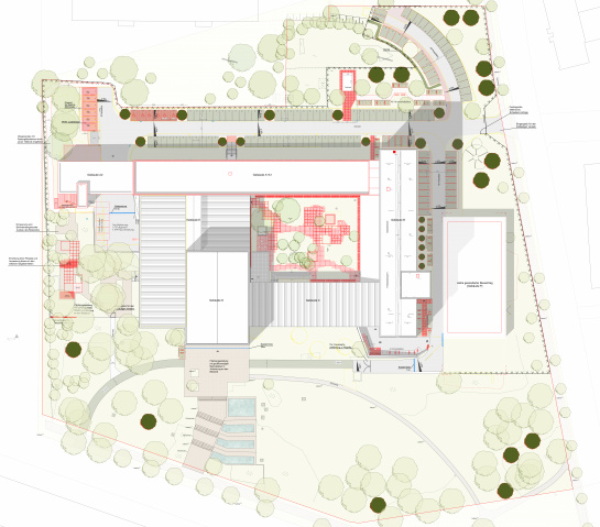 Der Neubau einer Zweifeldsporthalle am südöstlichen Grundstücksbereich ist geplant.