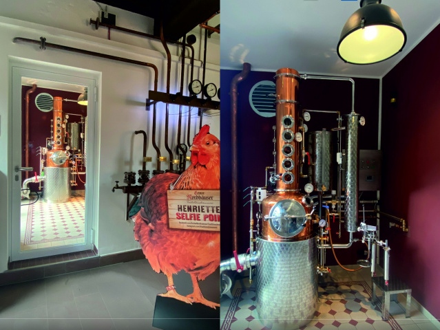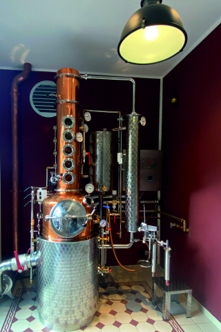 Die Echte Nordhäuser Traditionsbrennerei ist die letzte traditionelle Brennerei. Sie lebt mit Errichtung der Kleinbrennblase Tradition fort. Es wurde der einstige Kesselraum entkernt und die Brennblase mit separater Erschließung vom Hof und für Einblicke vom Verkaufsladen installiert. Die Alu-Glas-Tür hinter der bauzeitlichen Rundbogentür lädt dabei schon von weitem neugierige Besucher ein. Für die Anlagenaufstellung wurde die darunterliegende Decke statisch und der Raum brandschutztechnisch ertüchtigt. Die Technik dient zum Schaubrennen während der Öffnungszeiten der Ausstellung. Das Angebot, Einblick in die Brennkunst zu bekommen, ergänzt die Führungen durch die hundertjährige Brennerei mit ihrer weit bekannten Korn-Historie.