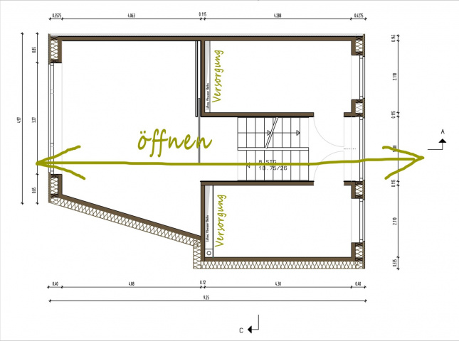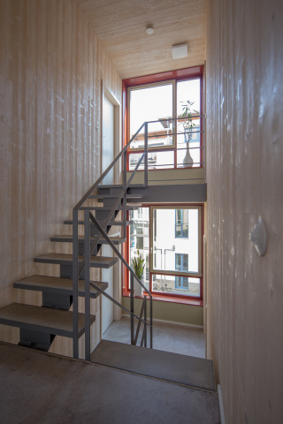 Gemeinsam mit dem Statikbüro ibr TRAGWERK Barth + Rugenstein und dem Brandschutzplaner Dr. Spindler, entwickelten wir ein Konzept, bei dem immer eine Seite einer Holzwand sichtbar bleiben kann. (zusätzlicher Abbrand, zusätzliche Brandmelder, 2 Brandabschnitte)