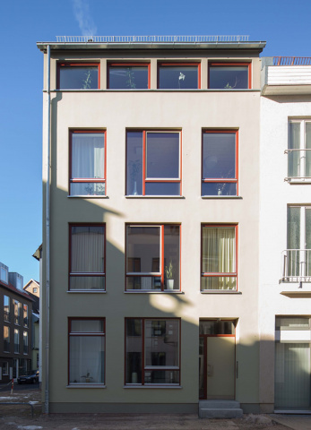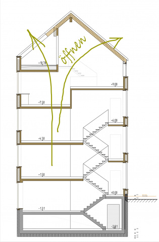 Ein Holzhaus in einer Zeilenbebauung in der Innenstadt zu errichten, war eine große Herausforderung. Doch das zu erwartende Wohnklima, die Nachhaltigkeit des Baustoffes, die Optik und Haptik von Holz und eine Aufstellzeit des Rohbaus von nur 3 Tagen in der engen Innenstadt-Lage waren ein Ansporn.