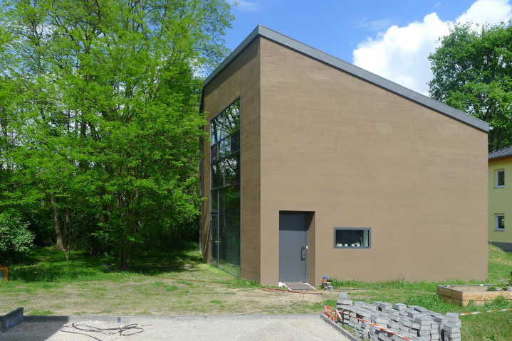 Neubau eines Einfamilienhauses in Bernau bei Berlin in monolithischer Bauweise, mit Wärmepumpe und kontrollierter Wohnraumlüftung.