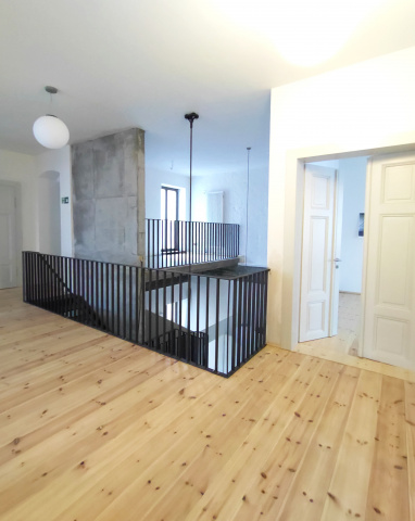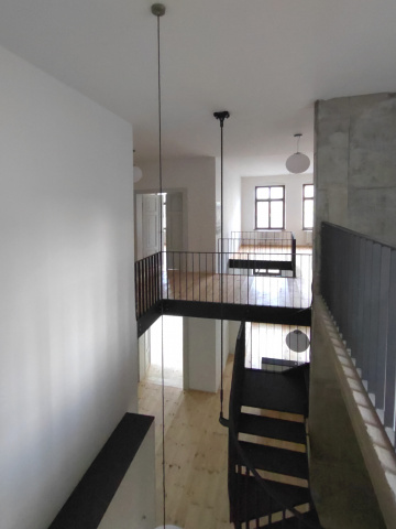 Die Innere Struktur mit historischen Grundriss wird durch neu geschaffene Verbindungen erlebbar. Es präsentieren sich zeitgemäße Materialien. So kamen - wo es statisch notwendig war, sichtbare Betonwände und Decken zum Einsatz. Teilweise sind die historischen Ziegelwände noch sichtbar. Auch die historischen Innentüren wurden gerettet, aufgearbeitet. Im wesentlichen kamen natürliche Materialien zu Einsatz. So wurden z.B. die Böden als Holzböden wieder hergestellt.