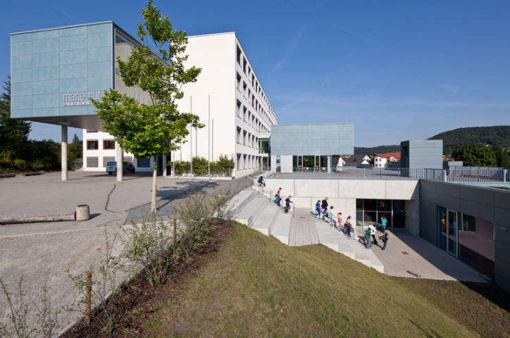 Der Schulstandort wird durch drei wichtige Merkmale geprägt: die exponierte Lage der Schulgebäude über dem Hang, die ausdrucksvolle Architektur der Ergänzungsbauten und nicht zuletzt die sensible Lage zur benachbarten Wohnbebauung.