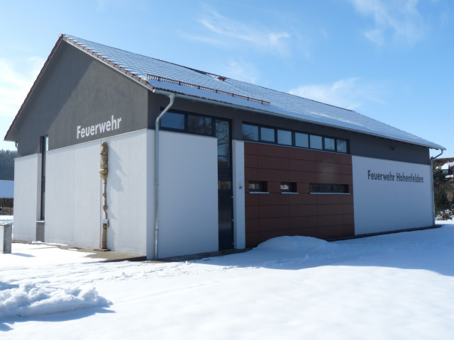 Der Bau der Freiwilligen Feuerwehr Hohenfelden konnte dank des selbstlosen Einsatzes der vielen freiwilligen Helfer aus Hohenfelden realisiert und am 17.November 2012 feierlich eingeweiht werden. Das fertig gestellte Gebäude beinhaltet im Erdgeschoss zwei Stellplätze für die Fahrzeuge der Freiwilligen Feuerwehr sowie Werkstatt, Umkleideraum und Sanitäreinrichtungen. Zusätzlich entstand ein separat abschließbarer Gebäudeteil für die Gemeinde, der sich aus Multicargarage, Lagerflächen und einem Raum für die Gemeindearbeiter zusammensetzt. Im Obergeschoss befinden sich das Büro des Ortsbrandmeisters, ein Raum für die Jugendfeuerwehr, ein Versammlungsraum mit kleiner Küche sowie ein Archiv und Traditionszimmer.