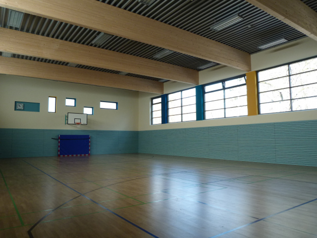 Der Boden wurde als Sportboden mit Parkettbelag ausgebildet, um eine universelle Nutzung zu ermöglichen.