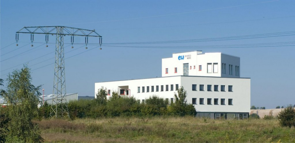 Unter dem Dach der Eichsfeldwerke hat sich seit der Gründung 1996 eine dynamische Unternehmensentwicklung vollzogen. Das rasante Wachstum erforderte die Erweiterung des Heiligenstädter Firmensitzes. Die Verschmelzung des vorhandenen Betriebsgebäudes mit dem Neubau erzeugt einen Baukörper, der im architektonisch ausgewogenen Gleichgewicht zum dominanten fünfgeschossigen Bürogebäude steht. Im Zentrum verbindet die dreigeschossige Eingangshalle, mit eingehängten Verbindungsstegen und Haupterschließungselementen, die einzelnen Gebäudeteile behindertengerecht. Das bestehende Treppenhaus wurde zum Verbinder geöffnet und der untere Treppenlauf schiebt sich in den Empfangsbereich, hohe funktionale und gestalterische Qualitäten entstehen. Das Erdgeschoss des Neubaus beherbergt Mehrzweckraum und Kantine. In den Obergeschossen legen sich die Büros um einen Kern aus Archiven und Technik. Kurze Wege sind Indizien für das kompakte Konzept.
