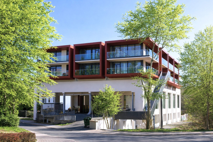 Auf dem Postverteilzentrum in Jena wurde eine zweigeschossige Wohnanlage gebaut, in deren Mitte sich ein gemeinschaftliches Atrium befindet, das zur Erschließung der einzelnen Wohnungen dient. Das gesamte Bauvorhaben umfasst 17 verschiedene neue Eigentumswohnungen mit großzügigen Terrassen bzw. Balkonen, eine innere Teilsanierung des Erdgeschosses und der Kellerräume sowie die Sanierung der Bestandsfassade.