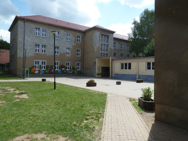 vorher - Blick vom Innenhof auf die die Gebäude GS 18 mit Speiseraumanbau und KGS, Bild: Sabine Schwerin -