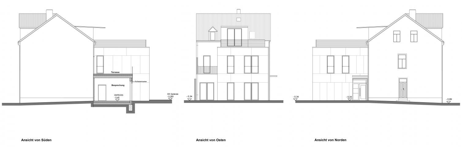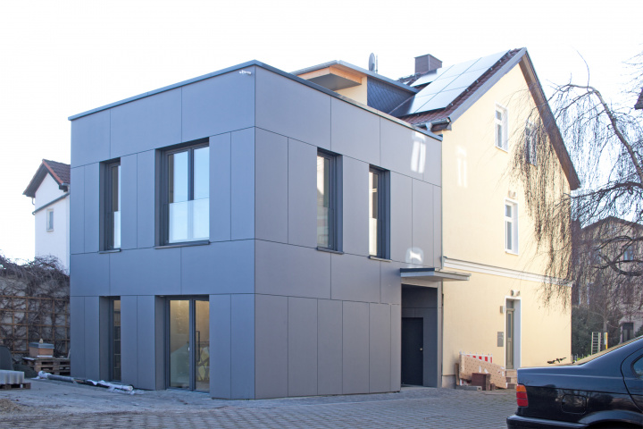 Der Altbau vom Ende des 19. Jahrhunderts wurde bereits als Bürogebäude genutzt. Mit der Erweiterung um einen Anbau nach Osten konnten zusätzliche Nutzflächen und ein separater Eingang geschaffen werden. Die Orientierung nach Osten in den grünen Quartiersbereich schafft hohe räumliche Qualitäten. Gestaffelte Balkon- und Terrassenflächen können im Obergeschoss und Dachgeschoss zusätzlich genutzt werden. Die detaillierte Fassadenoptik und großzügige Fensterflächen geben dem Anbau eine moderne Anmutung und ein selbstbewusstes Erscheinungsbild.