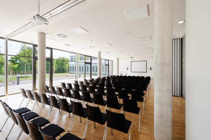 Die Erweiterung des Objektes „DasKinderMedienZentrum, Erfurt“ dient einer standortbezogenen Weiterentwicklung von kleinen und mittleren Unternehmen der Kindermedienbranche sowie integrierter Bildungs- und Forschungseinrichtungen des Fraunhofer Instituts für Digitale Medientechnologie. Der 4-geschossige Erweiterungsneubau (3 Obergeschosse, 1 Untergeschoss) ist mit dem bestehenden Gebäude im 1. OG durch eine transparente Brücke verbunden. Damit wird eine witterungsunabhängige Erreichbarkeit der Produktionsräume im Bestandsgebäude aus den im Erweiterungsneubau befindlichen Büros, Laboren und Werkstätten sichergestellt. Der komplett unterbaute Hof ist als begrünter Innenhof ausgeführt. Terrassen, Bäume, Sträucher und sonstige Pflanzungen ermöglichen eine hohe Aufenthaltsqualität. Das neue Gebäude ist so konzipiert, dass sich ein weiterer Bauabschnitt zu einem späteren Zeitpunkt anschließen lässt.