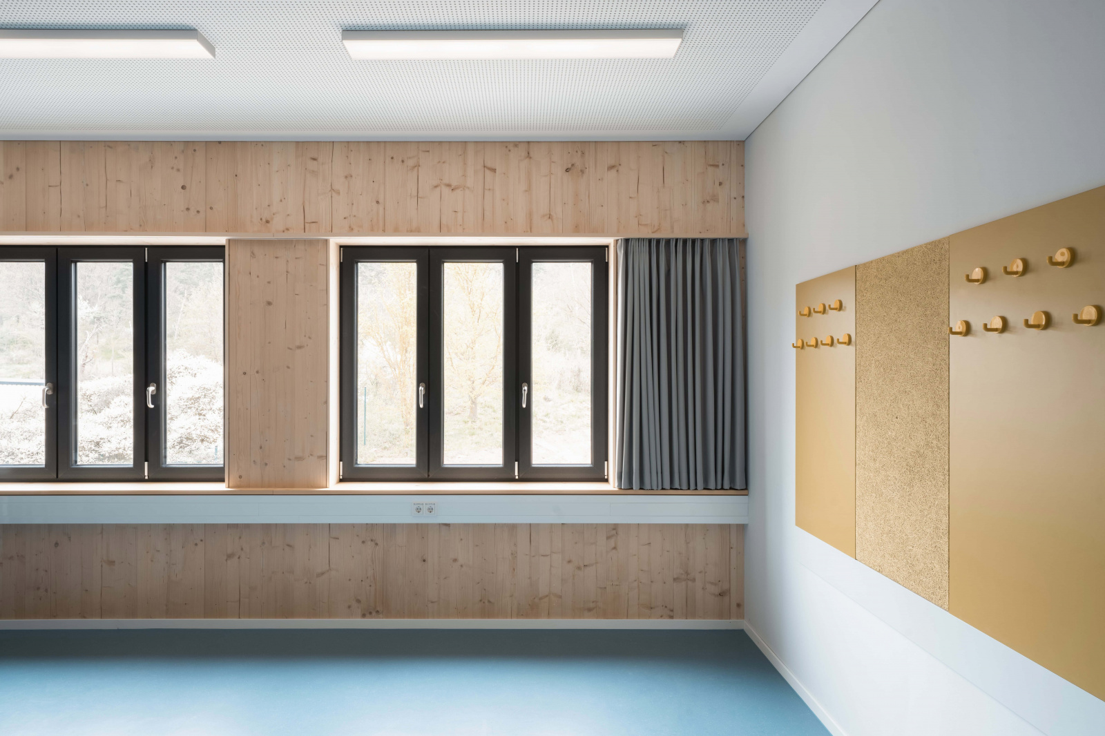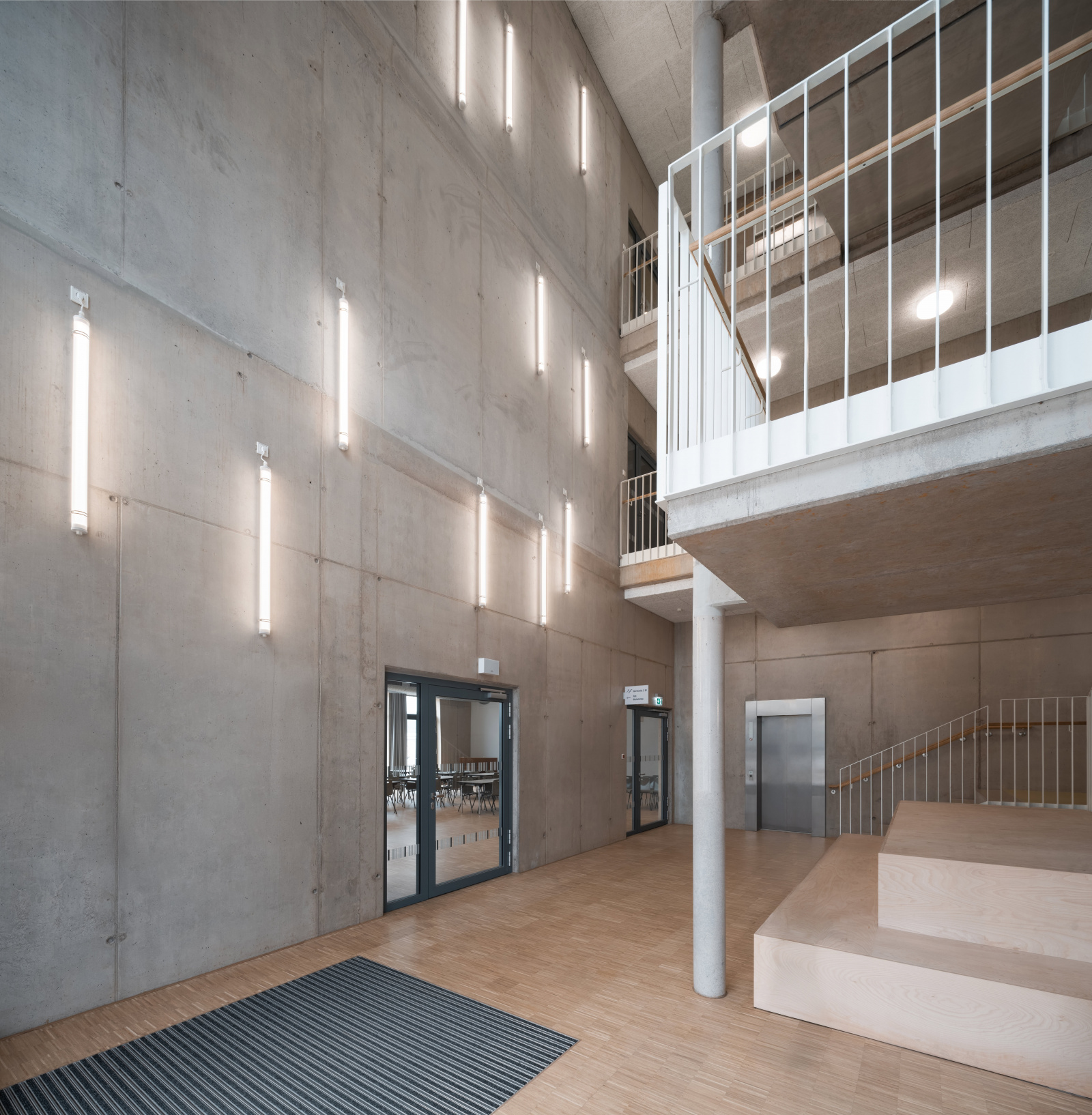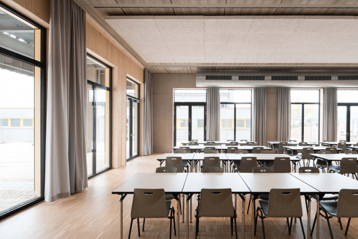 Mensa/Aula mit Massivholzwänden, Bild: hks architekten BDA -
