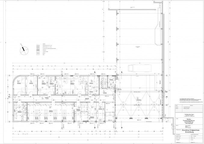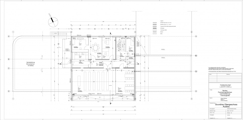 Der Neubau der Feuerwehr in Weida entstand an der Stelle des baufälligen Feuerwehrgerätehauses und wurde nach den Anforderungen der neuen DIN 14092 geplant. Im EG befinden die Umkleide-und Sanitärräume, Bereitschaftsraum, Bekleidungskammer, Trocknungsraum, Technikräume, sowie Werkstätten und Lager. Im OG befinden sich der Raum zur Lagebesprechung und die Funkzentrale, sowie Büro, Küche, Jugendraum und Seminarraum. Die bestehende Fahrzeughalle wurde erweitert. Die Lösung 2 neue und einen bestehenden Stellplatz mit Ausfahrt zur Straße auszurichten bestimmte das Konzept. Neben der modernen Ausstattung wurde auch energiesparende Haustechnik eingesetzt: Solarthermie, Lüftung mit Wärmerückgewinnung, Photovoltaik-Anlage, sowie Regenwassernutzung für die Schlauchwäsche.