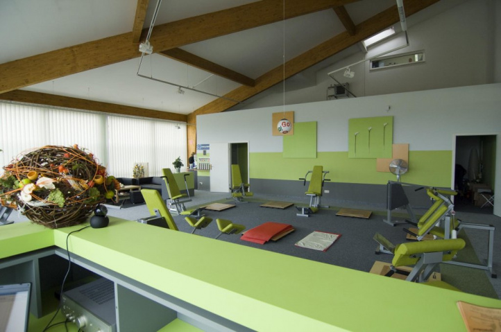 Die Schwierigkeit bei diesem Bauvorhaben bestand darin, in einem 7,50 hohen Gebäude eine Angenehme und Motivierende Atmosphäre zu schaffen um den inneren Schweinehund zu besiegen.
