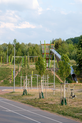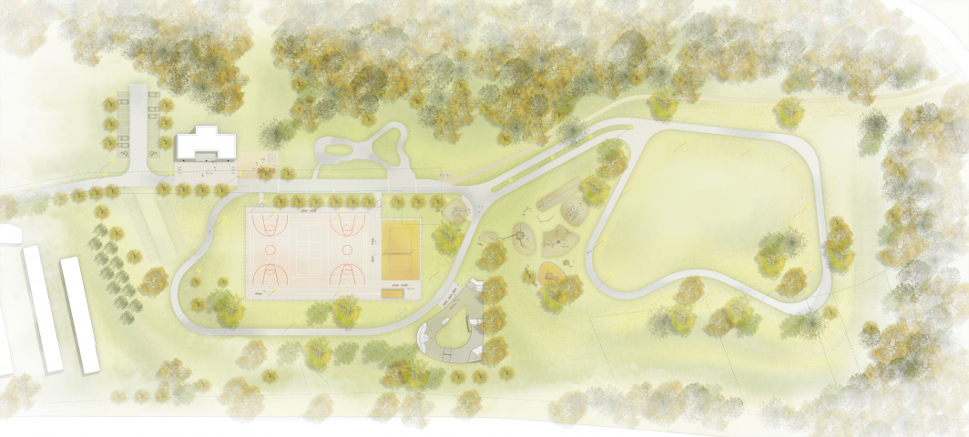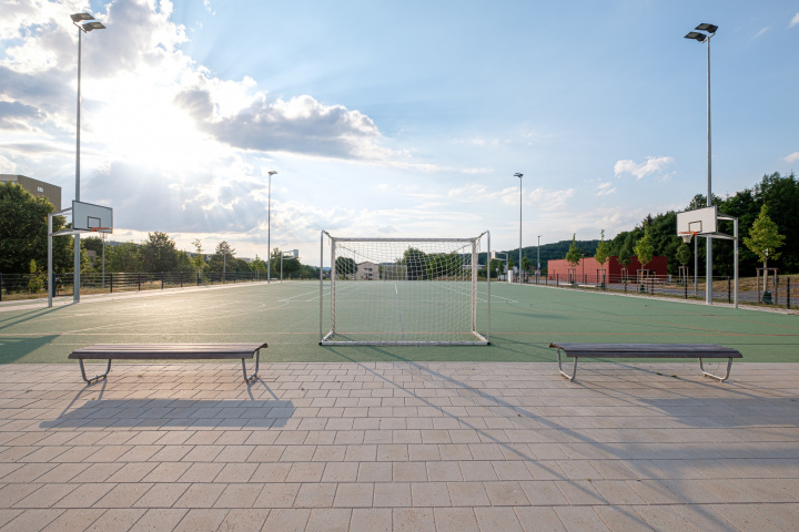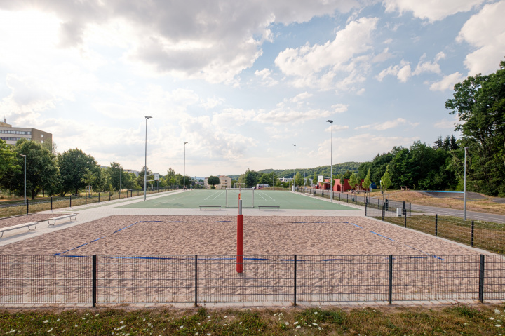 Realisiert wurden ein Mehrzwecksportfeld, ein Beachvolleyballfeld und eine Rundstrecke für Rollski und Cross-Skates mit LED-Lichtanlage, ein Skatepark und eine Calisthenicsanlage sowie ein Kinder-Aktivpark mit Kletterturm, Rutschen, Schaukeln und Seilbahn. In das Gestaltungskonzept integriert wurde zudem der Kinder- und Jugendclub „Red Cube“ sowie der angrenzende Pumptrack.