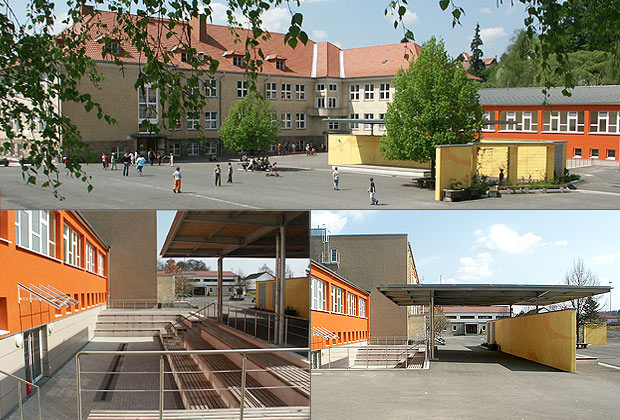 Mehrzweckräumen in den Obergeschossen. Im Außenbereich wurden der Spielplatz, der Schulgarten sowie ein überdachter Pausenbereich neu geschaffen.