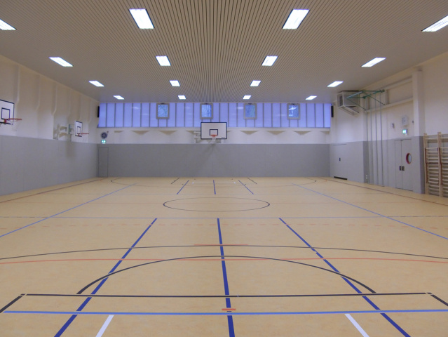 Die alte Grundrissorganisation wurde mit wenigen Eingriffen in den Bestand optimiert. Durch Reduzierung von Verkehrswegen konnten mehr Lager- und Technikflächen geschaffen werden. Das sanierte Turnhalle ist nun für eine Vielzahl von Ballsportarten und sogar für deren Wettkampfbetrieb geeignet.