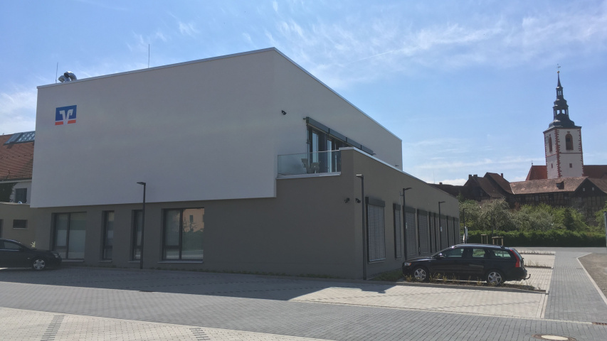 Im Ortskern von Römhild, angrenzend an das Einzeldenkmal Heurichstraße Nr. 1 (letzte Originalsubstanz des ehemaligen Schabhofes) und das Hauptverwaltungsgebäude Raiffeisenbank im Grabfeld wurden 6 neue Gewerbeinheiten mit folgenden Nutzungen errichtet: