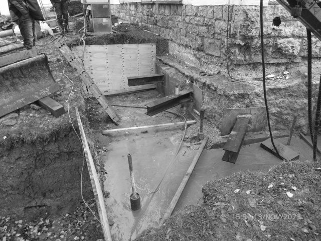 Hierzu wurde mittels einer Doppelreihe aus Mikrobohrpfählen das bestehende Fundament