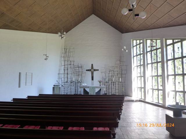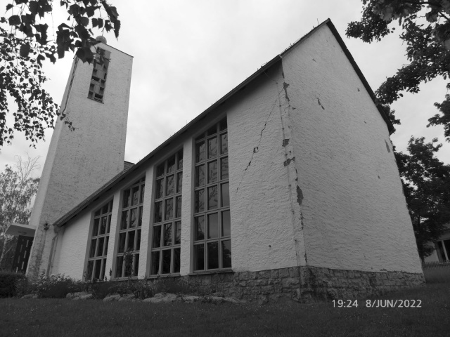 Die denkmalgeschützte Kirche, geweiht 1966, erbaut nach dem Entwurf des Architekten Klaus Kaufmann ist eine herausragende Architektur der mordernen Bauten der sechziger Jahre in Weimar.