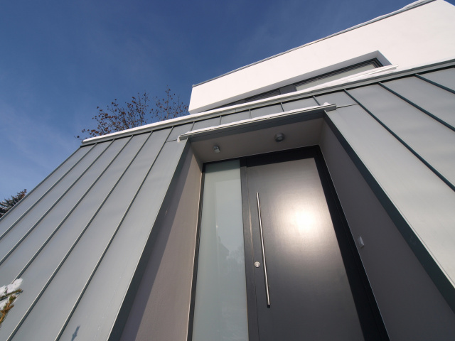 Südfassade mit Zufahrt Garage, Bild: Tom Kanngießer -