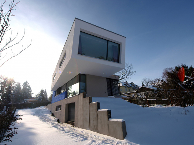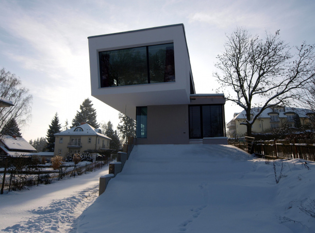 Ein langgestrecktes, nach Norden ausgerichtetes Hanggrundstück, dessen Erschließung über eine desolate, auf 7,5 Tonnen Nutzlast beschränkte Einbahnstraße erfolgt, sollte Basis für die Planung eines Wohnhauses für eine Familie mit zwei Kindern sein.