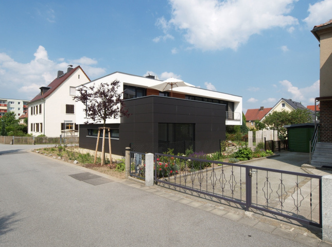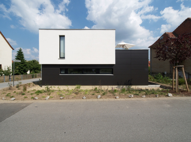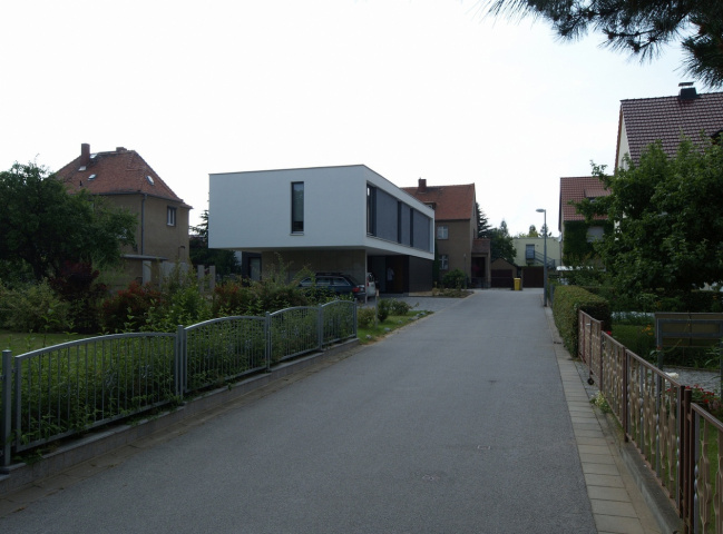 Das Baugebiet, in dem dieses Wohnhaus errichtet wurde, ist in den 1930er Jahren entstanden. Die Monotonie der Baukörper aus der Entstehungszeit hat das Baugebiet vermutlich bis in die 1990er Jahre geprägt. Manche Gebäude aus dieser Zeit waren unsaniert und hatten noch ihren ursprünglichen Charakter, andere sind in jüngster Zeit saniert worden und lassen diesen Charakter nicht mehr erkennen. Durch die zahlreichen Aus- und Umbauten an den vorhandenen Gebäuden und die neu entstandenen „bunten“ Einfamilienhäuser fehlt dem Baugebiet eine klare Struktur. Ziel des Entwurfs war, einen Baukörper auf dem Eckgrundstück entstehen zu lassen, dessen architektonisch sachliche Formensprache eindeutig Referenz auf die Jetztzeit bezieht.