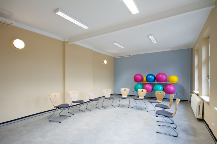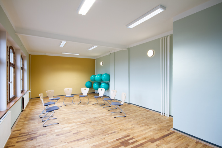 Das Projekt zielt auf notwendige bzw. mögliche Anpassungen baulicher Gegebenheiten im Bestand für eine inklusive Erwachsenenbildung in Thüringen, in der Umsetzung des Thüringer Gesetzes zur Inklusion und Gleichstellung von Menschen mit Behinderungen. Die VHS Hermsdorf erhielt zur Umsetzung von inklusiven Bildungsangeboten, für die Bereitstellung von Infra-struktur und Ressourcen Fördermittelzuwendungen des TMBJS. Bauliche Maßnahmen und Innenraumgestaltungen zur visuellen Barrierefreiheit im gesamten Schulhaus entsprechen DIN 18040-1 Barrierefreiheit von öffentlich zugänglichen Gebäuden. Der Fokus der Farbplanungen liegt hierbei auf (Leuchtdichte)Kontraste, u.a. auf Betonung von Türen/Zargen, Konturen, auf Trennung der Böden von Wänden, Kennzeichnung von Barrieren, Stufen, Treppenkanten.
