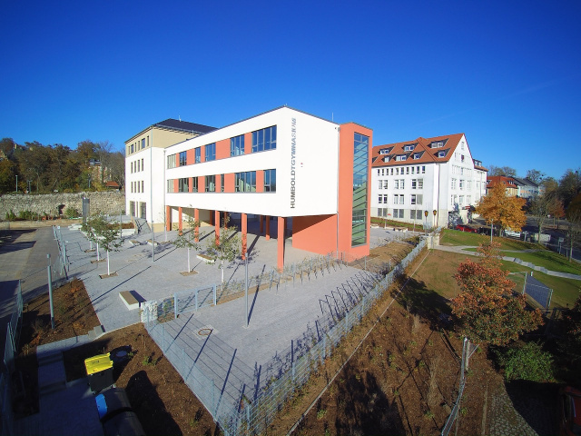 Der Ersatzneubau als historisches Statement mit Erweiterung in moderner Formensprache bietet nun ausreichend Platz für die Oberstufe des Humboldt-Gymnasiums in Nordhausen. Sämtliche Klassen- und Kursräume sowie die Fachkabinette bieten modernsten Komfort und sind klar strukturiert sowie auf kurzen Wegen erreichbar.