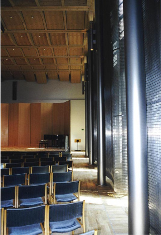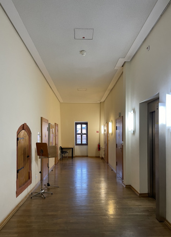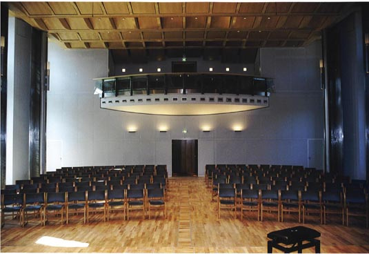 Im Mitteltrakt wurde ein moderner, nutzungsflexibler Konzertsaal eingesetzt. Dieser wird für Orchesterproben, Konzerte und Tonaufnahmen genutzt