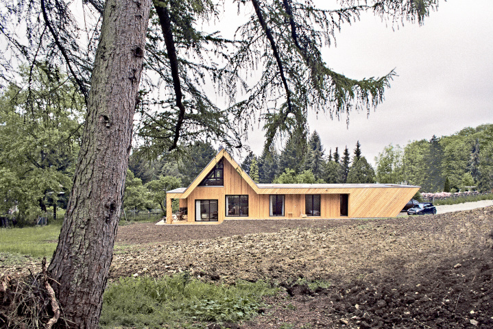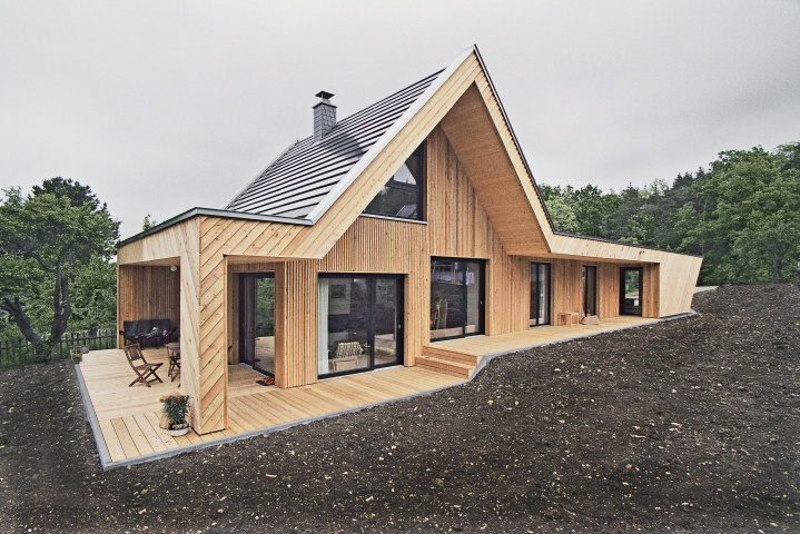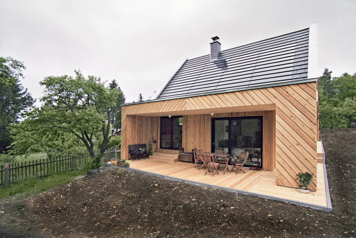 Gerade noch genug Nähe zur Stadt und bereits recht naturverbunden am Waldsaum entsprach die Lage den Vorlieben der Bauherrschaft. Die erzgebirgische Heimat im Herzen, Jahre an der schottischen Küste in Erfahrung und regelmäßige Aufenthalte in Malawi setzten weitere Maßstäbe an die Wohnerwartung und Lebensweise der drei Bewohner. Gewünscht war ein in der Größe effizientes Haus in „sauberer“ Bauweise mit schönem Raum zur individuellen Entfaltung und familiären Geborgenheit. Ein Schwerpunkt zur Hauskonzeption lag in der Transformation geliebter Wohnerfahrungen und typischer Erscheinung. „Holzhaisel“ steht dabei sinnbildlich für die konstruktive Tradition des Erzgebirges sowie für deren Sehnsucht nach Gemütlichkeit. Dichtere räumliche Fassungen, die Materialität, auch die archetypische Dachform verhelfen dazu. Großzügige Dachüberstände erlauben Assoziationen zu Schutzhütten in abgelegener Natur und sind gleichermaßen vertraut durch vielfältige Verandanutzung zwischen innen und außen. Das Feuer im Wohnbereich - Holzkochofen und Kamin mit Ofenbank, auch vertikal im Umluftsystem zum Dachraum - ist elementar wie ehedem in der Geschichte des Wohnens und eben auch unbedingt mit schottischen Häusern verbunden. Hier wird es zentraler Bezugspunkt vom Entree bis zum gemeinschaftlichen Aufenthalt.