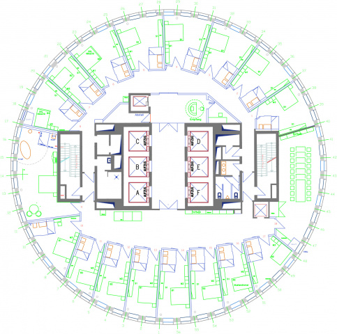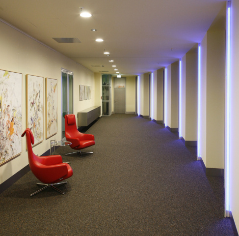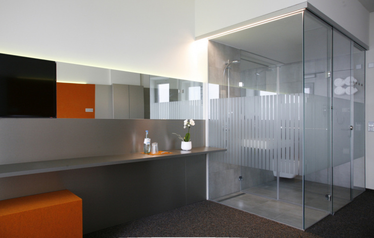 Das „SCALA Turm Hotel“ besticht im konsequentem Einsatz der Formen- und Materialsprache durch Leichtigkeit und Exklusivität. In Kombination mit der atemberaubenden Aussicht auf 120 Metern Höhe ergibt sich in Deutschlands zweithöchstem Hotel ein einzigartiges Wohnerlebnis. Glas und Aluminium mit kontrastierenden orangefarbenen Filz, Ganzglasbäder und individuell wählbarer LED-gesteuerten Farbstimmung der einzelnen Räume garantieren sinnliches Vergnügen und einen Aufenthalt auf höchstem Niveau.