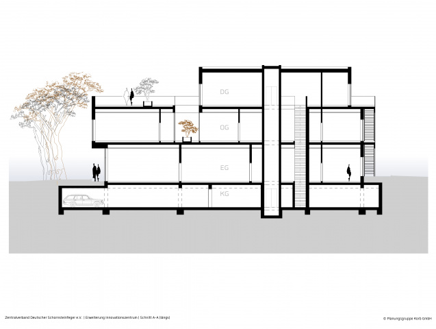 Erweiterung Innovationszentrum - Schnitt A-A (längs), Bild: Alexander Korb -