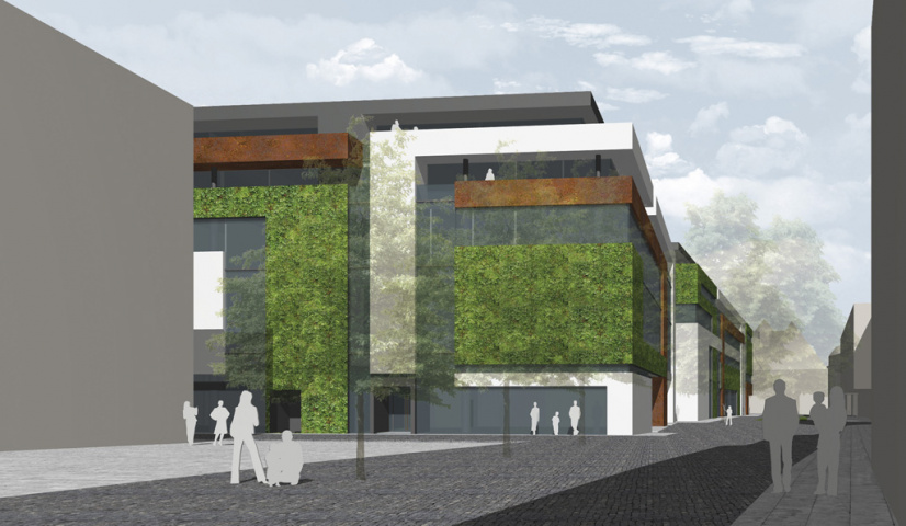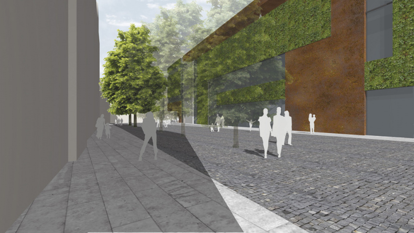PERSPEKTiVSCHEMA MiT FASSADENGRÜN [VERTiKALE GÄRTEN EiCHPLATZ], Bild: Gisbert Bachrodt -