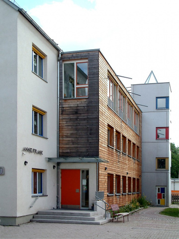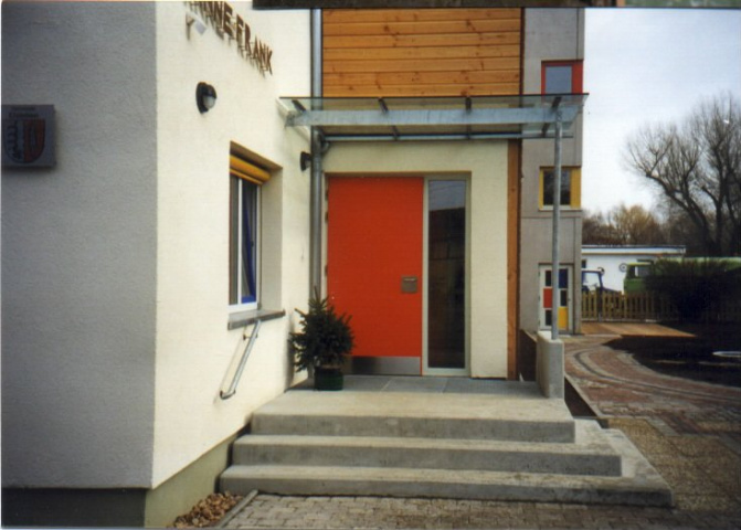 Das Gebäude des ehemaligen Kindergarten, ein profaner Mauerwerksbau, wurde vollständig umgestaltet und umgebaut und durch einen Gebäudeanbau ergänzt. Durch den Anbau erfolgte eine Flächenerweiterung und die Ausbildung einer Fluchttreppe.