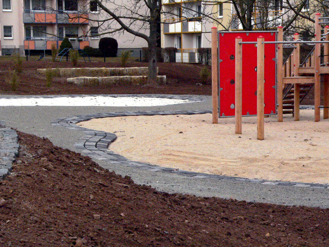 Im Zuge der Neuordnung des Quartiers Nordhausen-Ost hat sich die Stadt Nordhausen dazu entschieden, zusätzlich zum Umbau des Gebäudes auch die vorhandenen Freiflächen des innovativen Kinderhauses umzugestalten.